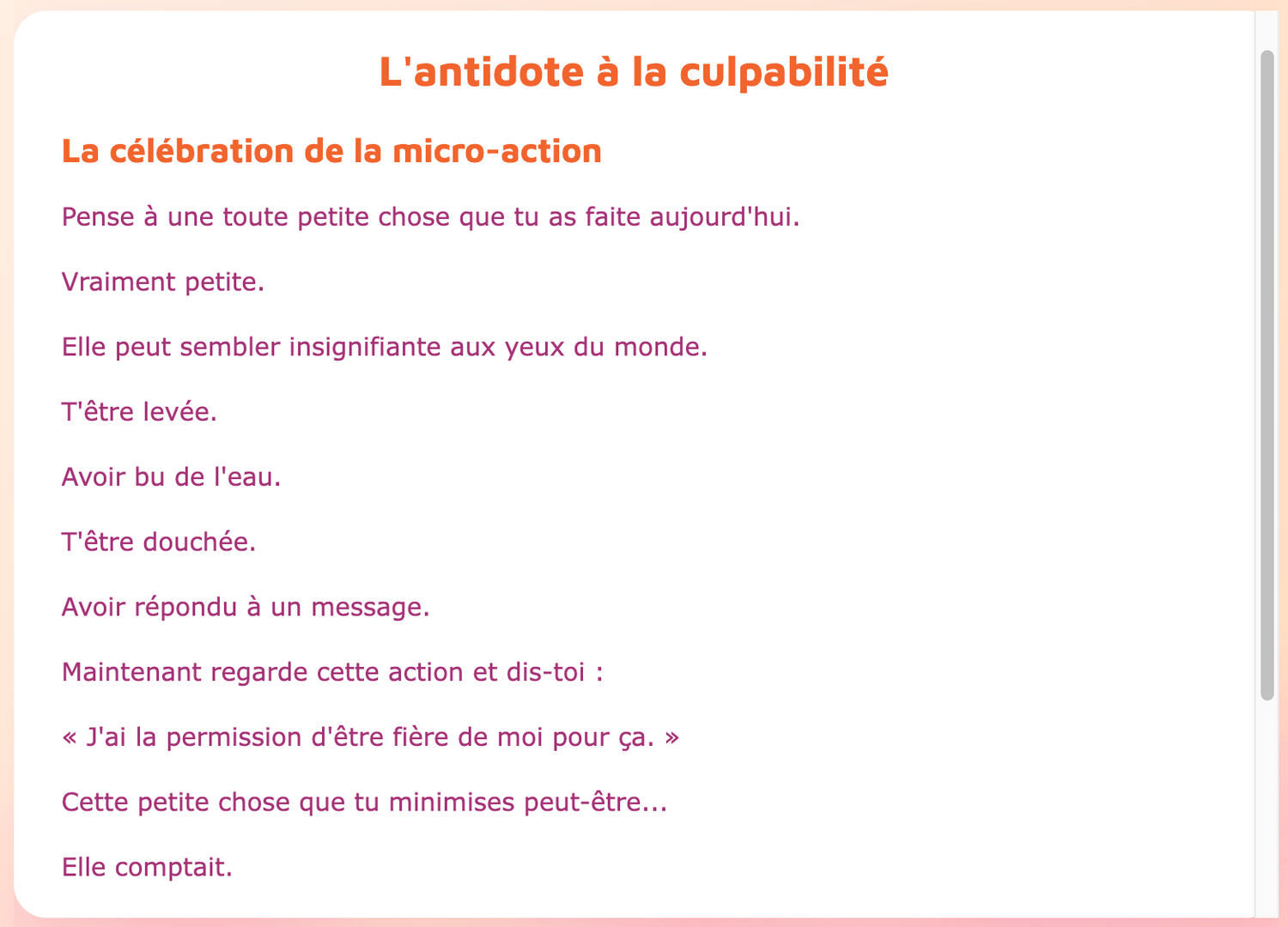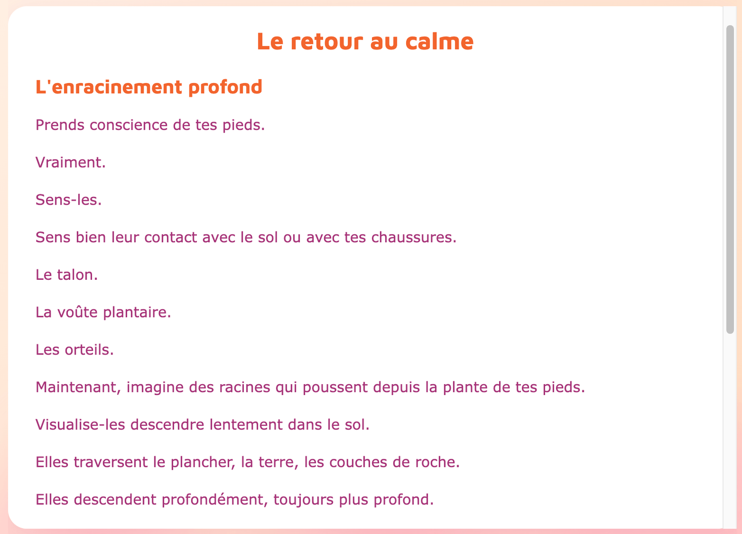 Découvrez nos ressources personnalisées et gratuites selon comment vous vous sentez, là maintenant, pour un soulagement immédiat. Disponible sur ordinateur ou directement depuis votre téléphone.